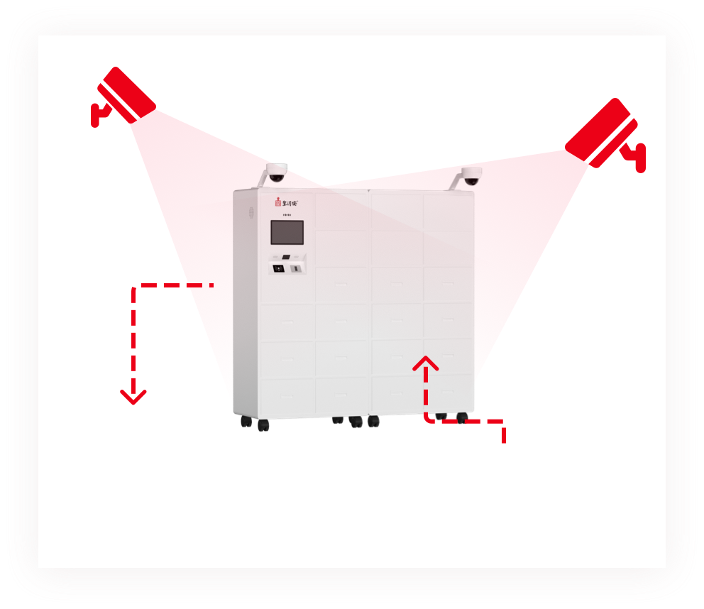 柜体配置高清球机摄像头,支持多倍变焦、AI智能移动侦测、快速人体捕捉等各类功能。