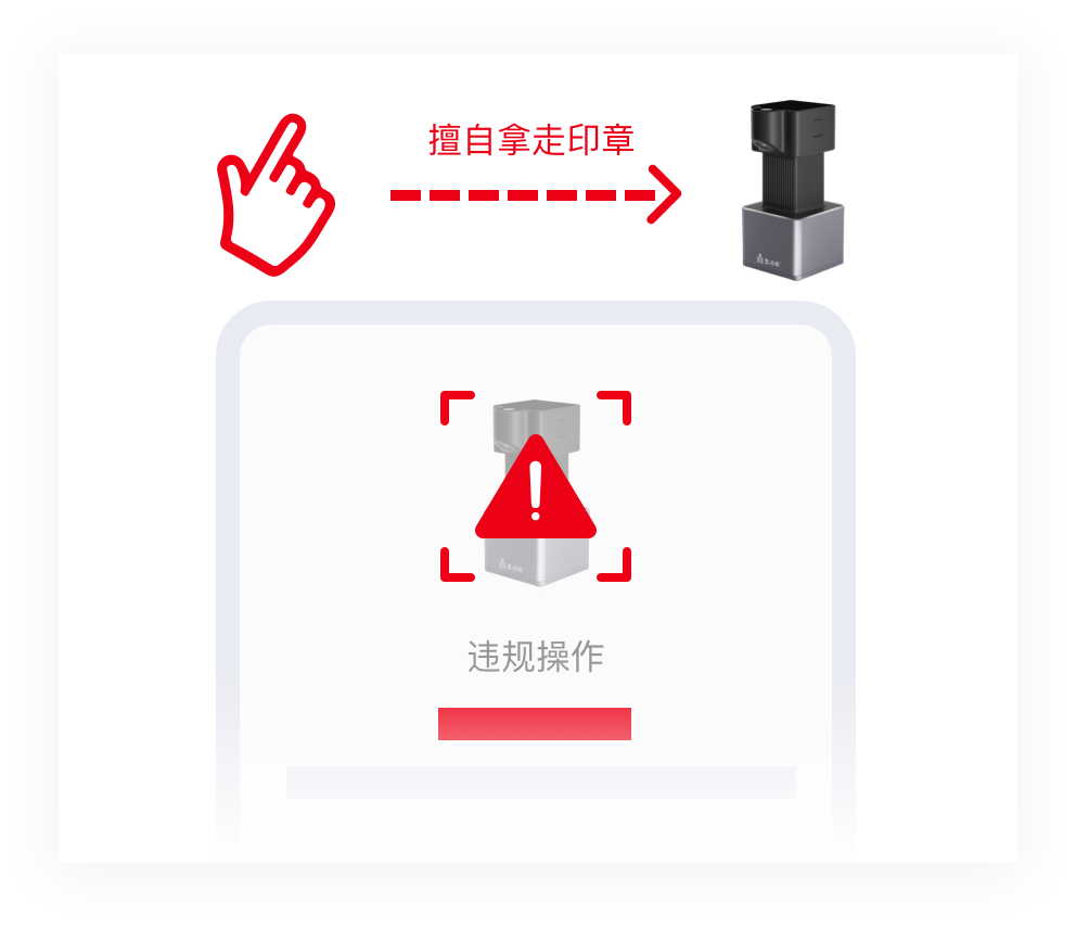 违规操作、擅自拿走印章、无操作等情况,系统会实时推送报警信息,并关闭使用权限。
